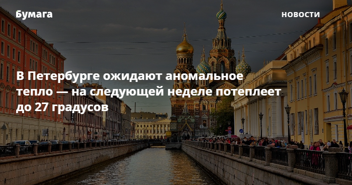 «С субботы температура выше нормы на 2–4 градуса на большинстве территории. Особенно тепло в Северо-Западном федеральном округе и на северо-востоке территории. Например, в Санкт-Петербурге в начале следующей недели очень высокие температуры — на 5–6 градусов выше нормы», — говорит Вильфанд.