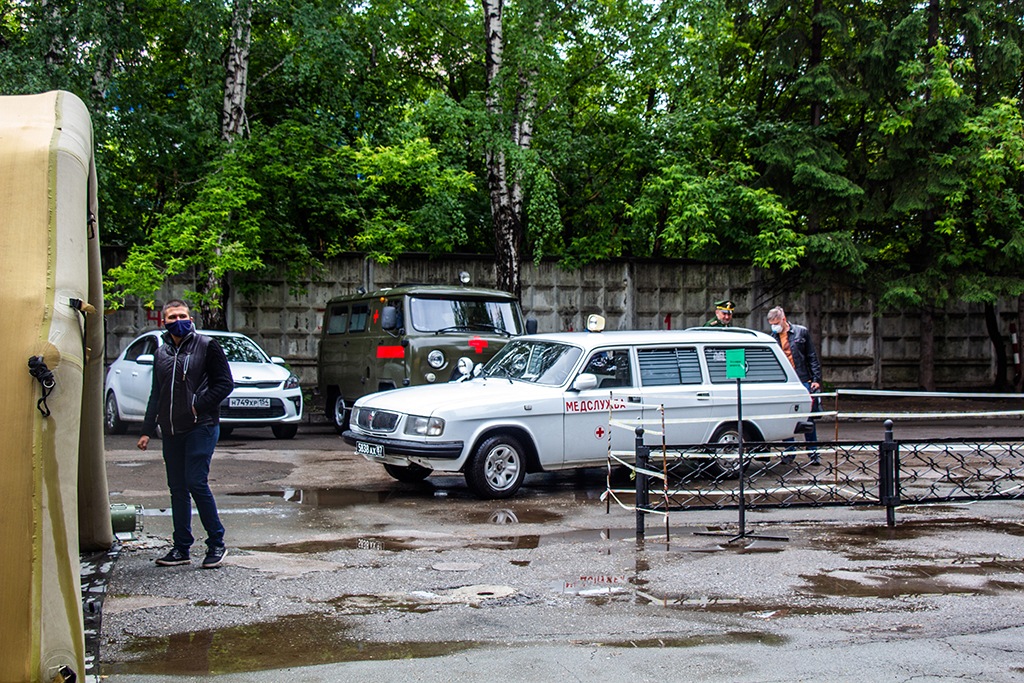 Тайга.инфо понаблюдала за новым коронавирусным госпиталем Минобороны в Новосибирске. Несмотря на слова главного инфекциониста области Ларисы Поздняковой, что с 5 июня учреждение начнет принимать гражданских больных, журналист не заметил там машин скорой помощи и людей в окнах палат, а охрана объекта попросила его удалить отснятый материал. Фоторепортаж Кирилла Канина