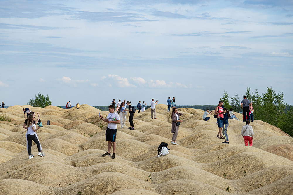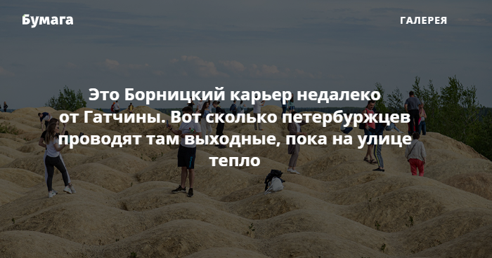 В Петербурге уже несколько дней стоит теплая погода — температура поднимается выше плюс 20 градусов. Многие горожане выезжают на отдых на природу, например, к Борницкому карьеру в 25 километрах от Гатчины. «Бумага» показывает, как выглядит место с «марсианскими пейзажами» в выходные.
