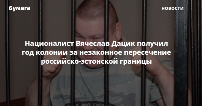 Суд в Ленобласти приговорил националиста Вячеслава Дацика к году колонии строгого режима по делу о незаконном пересечении российско-эстонской границы на лодке.