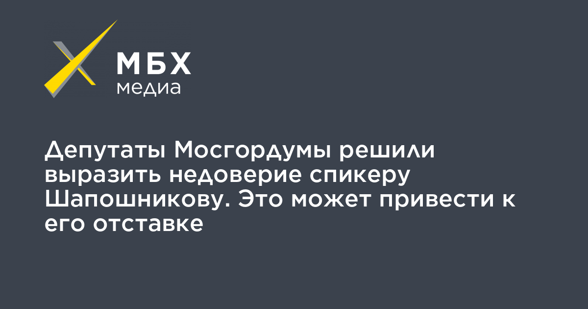 Девять депутатов Мосгордумы внесли проект постановления о недоверии спикеру столичного парламента Алексею Шапошникову. Об этом сообщил «МБХ медиа» один из депутатов Михаил Тимонов.