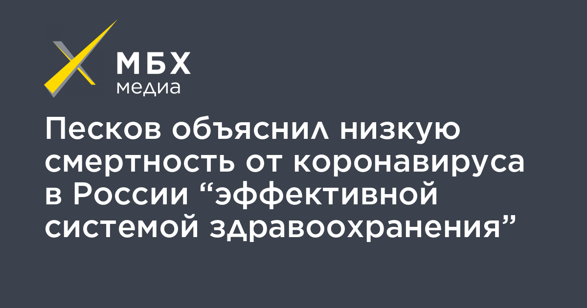 Песков объяснил низкую смертность от коронавируса в России «эффективной системой здравоохранения»