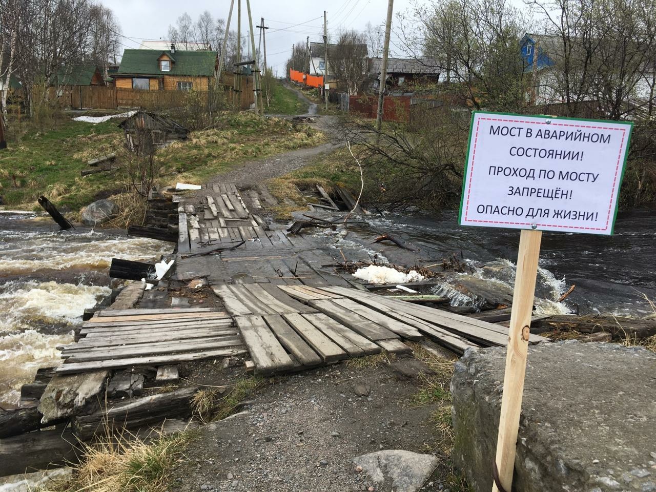 Паводок затронул и еще несколько населенных пунктов Кольского района. Пострадали дома, снесен красивый подвесной мост в поселке Молочном.
