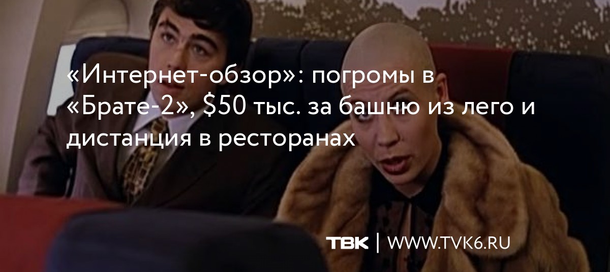 «Интернет-обзор»: погромы в «Брате-2», $50 тыс. за башню из лего и дистанция в ресторанах