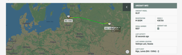 Самолет вылетел из Москвы в семь утра по московскому времени и приземлился в Риге в 08:10. Сейчас бизнес-джет все еще находится в столице Латвии.