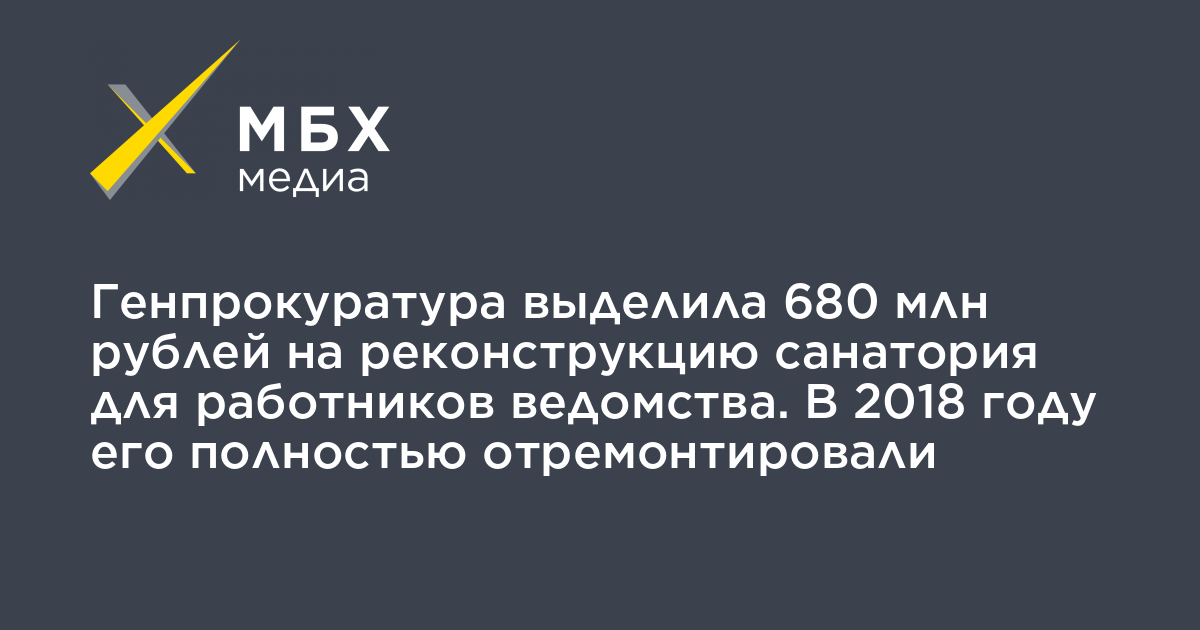 Генпрокуратура выделила 680 млн рублей на реконструкцию санатория для работников ведомства. В 2018 году его полностью отремонтировали