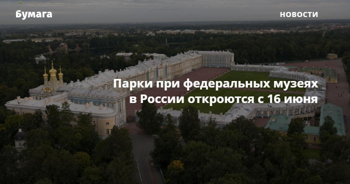 В пресс-службе отмечают, что посещение парков и экспозиций под открытым небом будет возможно при соблюдении всех принятых санитарно-эпидемиологических мер. Приказ об этом подписала министр культуры Ольга Любимова.
