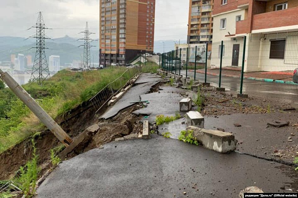 В Красноярске у дома №22 на улице 2-й Огородной в овраг сползла парковка, граница обвала приближается к жилому дому. Власти объявили режим ЧС, сообщается на сайте мэрии.