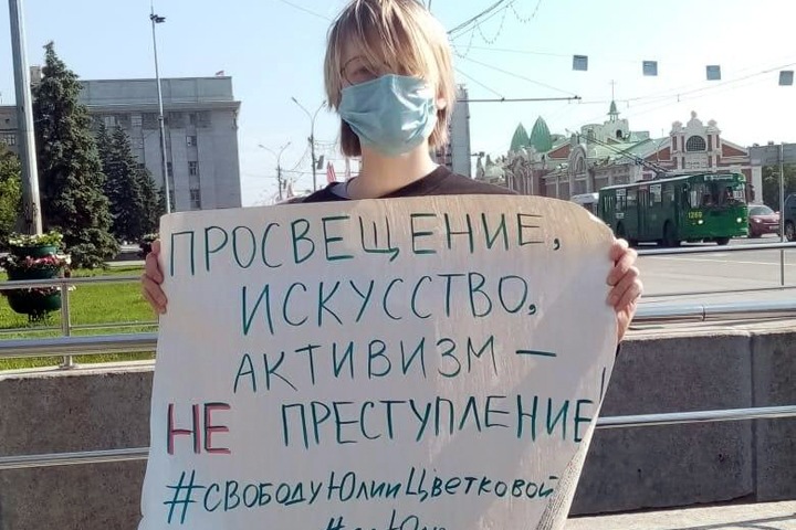 Одиночные пикеты в поддержку художницы Юлии Цветковой прошли в Новосибирске. Они обратили внимание на приравнивание сексуального просвещения к порнографии.