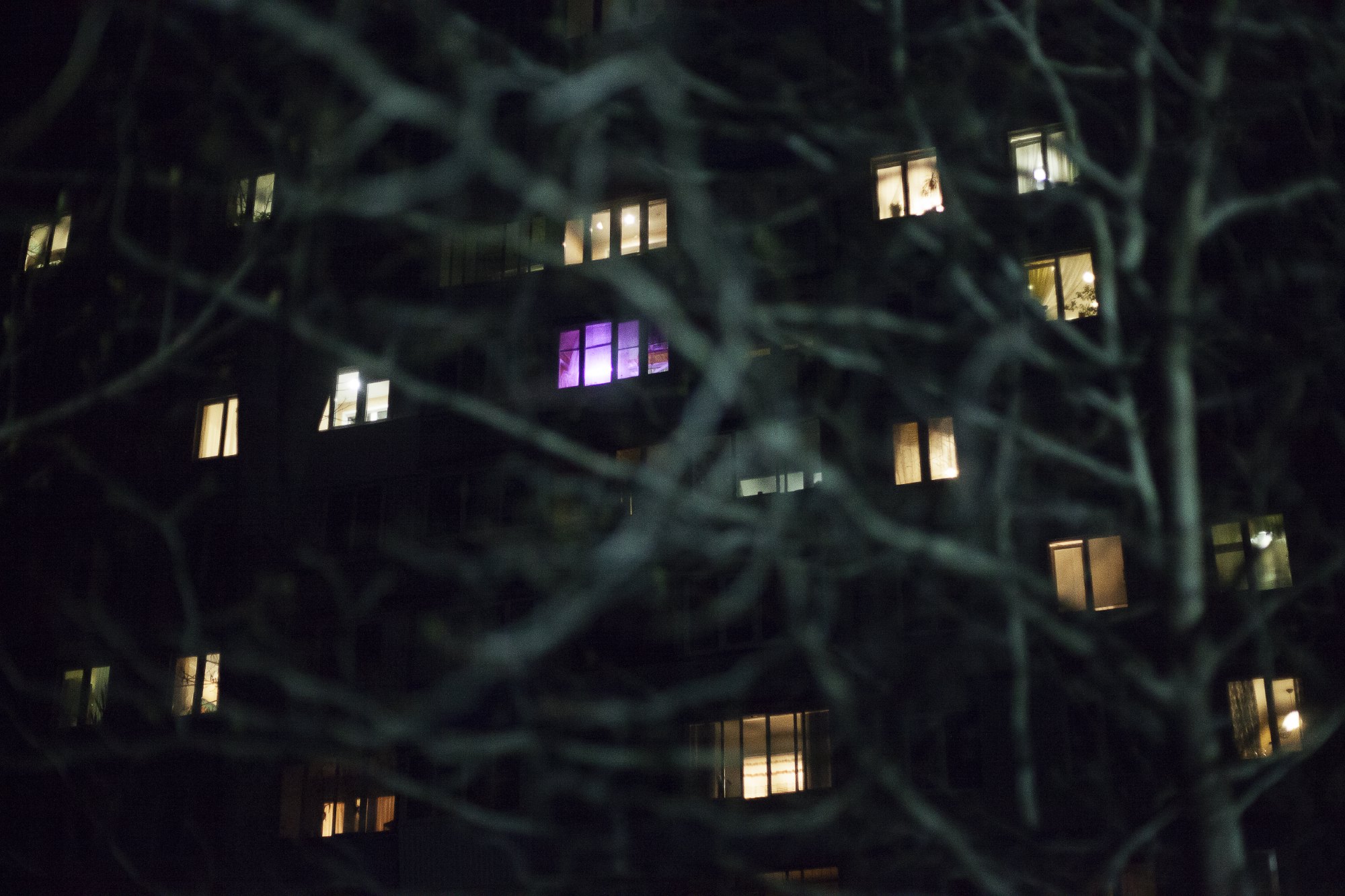 Почти в каждом доме есть розовые лампы для выращивания комнатных растений. Говорят, за таким окном живет главарь дома