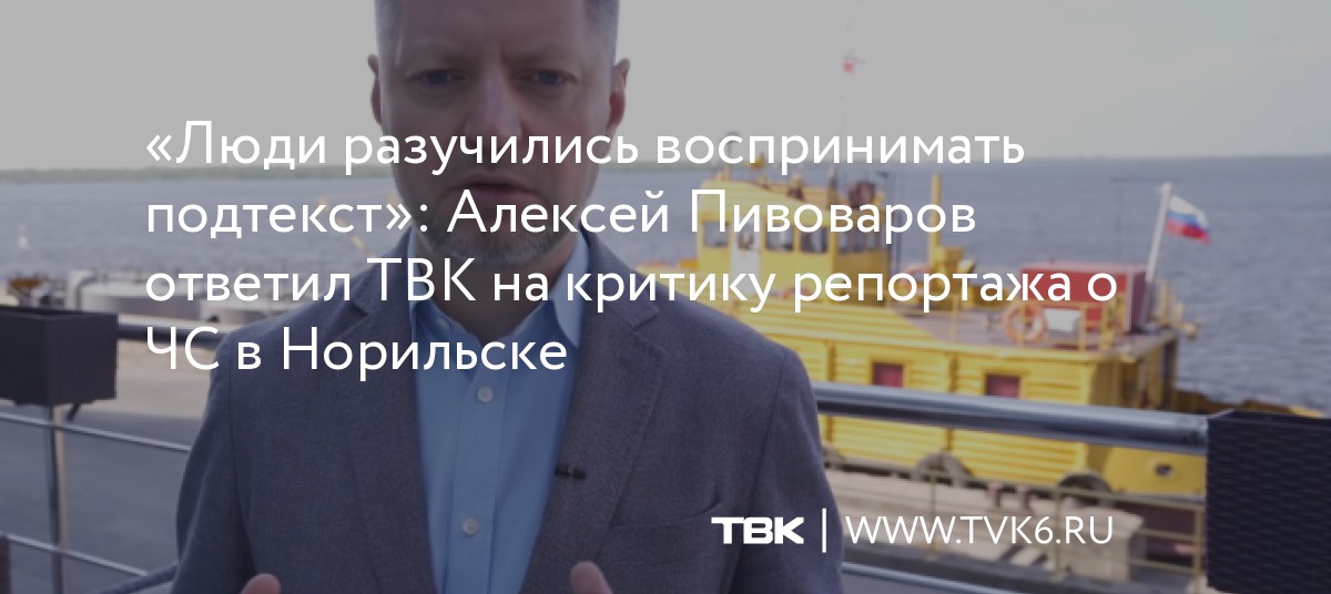«Люди разучились воспринимать подтекст»: Алексей Пивоваров ответил ТВК на критику репортажа о ЧС в Норильске
