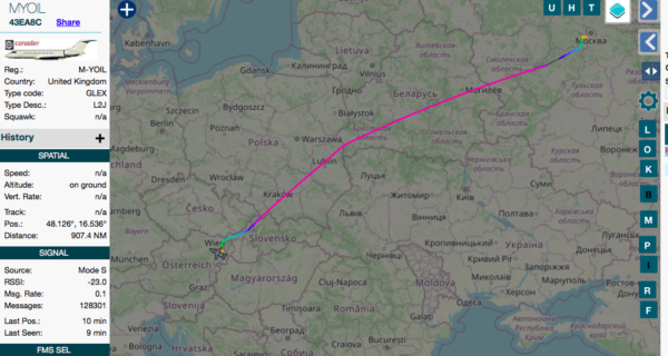 Бизнес-джет Bombardier Global 6000 с бортовым номером M-YOIL, которым пользуется глава «Роснефти» Игорь Сечин, прилетел в Вену. Об этом свидетельствуют данные ADS-B Exchange, обнаружило «МБХ медиа».