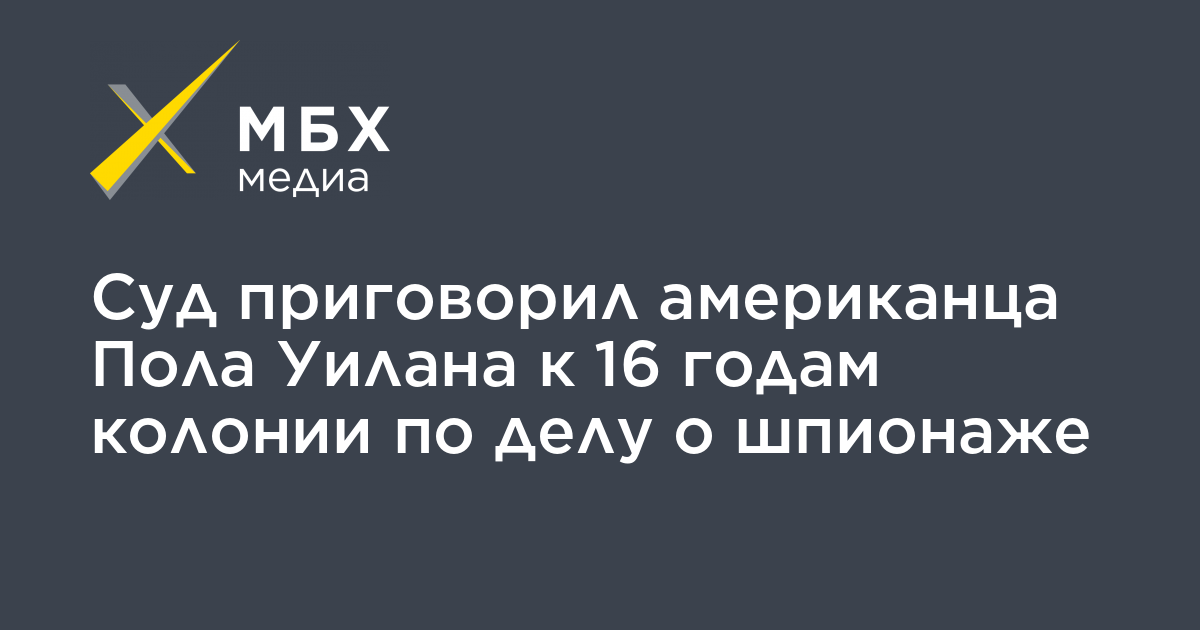 Мосгорсуд приговорил гражданина США Пола Уилана к 16 годам колонии строгого режима по делу о шпионаже. Об этом сообщает корреспондент «МБХ медиа».
