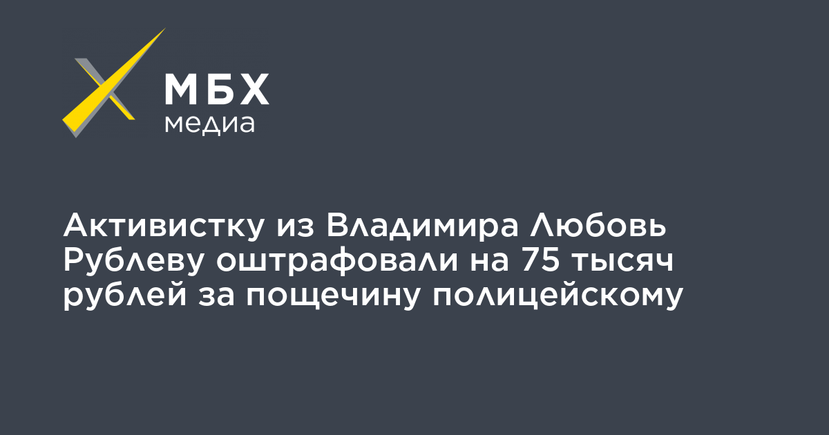 Активистку из Владимира Любовь Рублеву оштрафовали на 75 тысяч рублей за пощечину полицейскому