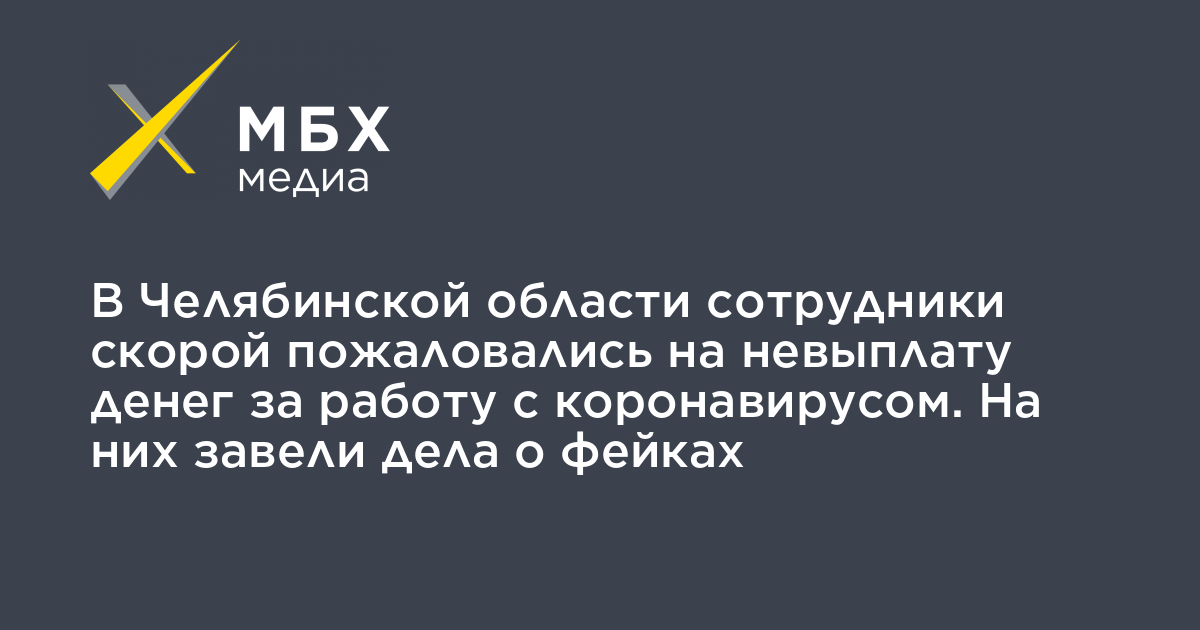 В Челябинской области сотрудники скорой пожаловались на невыплату денег за работу с коронавирусом. На них завели дела о фейках