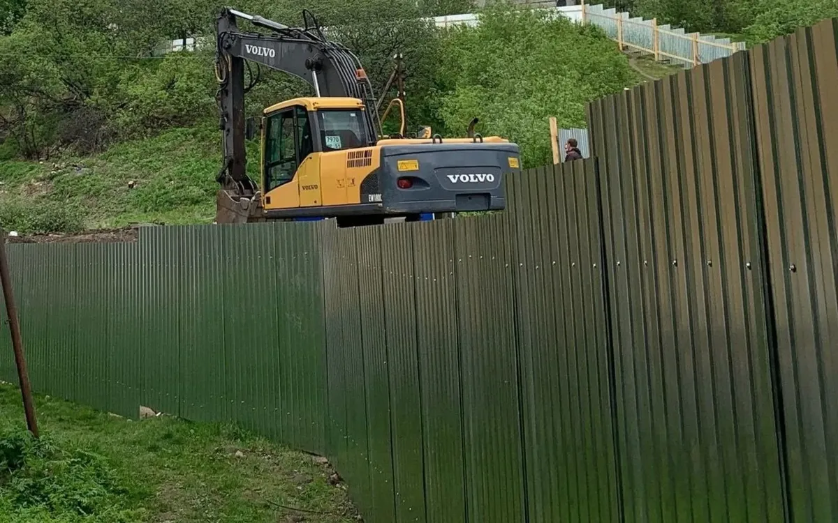 Российская Федерация заявила о себе недвусмысленно, вырубив первые деревья и поставив забор, — тогда еще небольшой. Администрация города сообщила жильцам, что взамен 14 уничтоженных ив и двух кустов малины прокуратура области до конца сентября 2022 года посадит где-нибудь в округе 4 ивы и засеет газон.