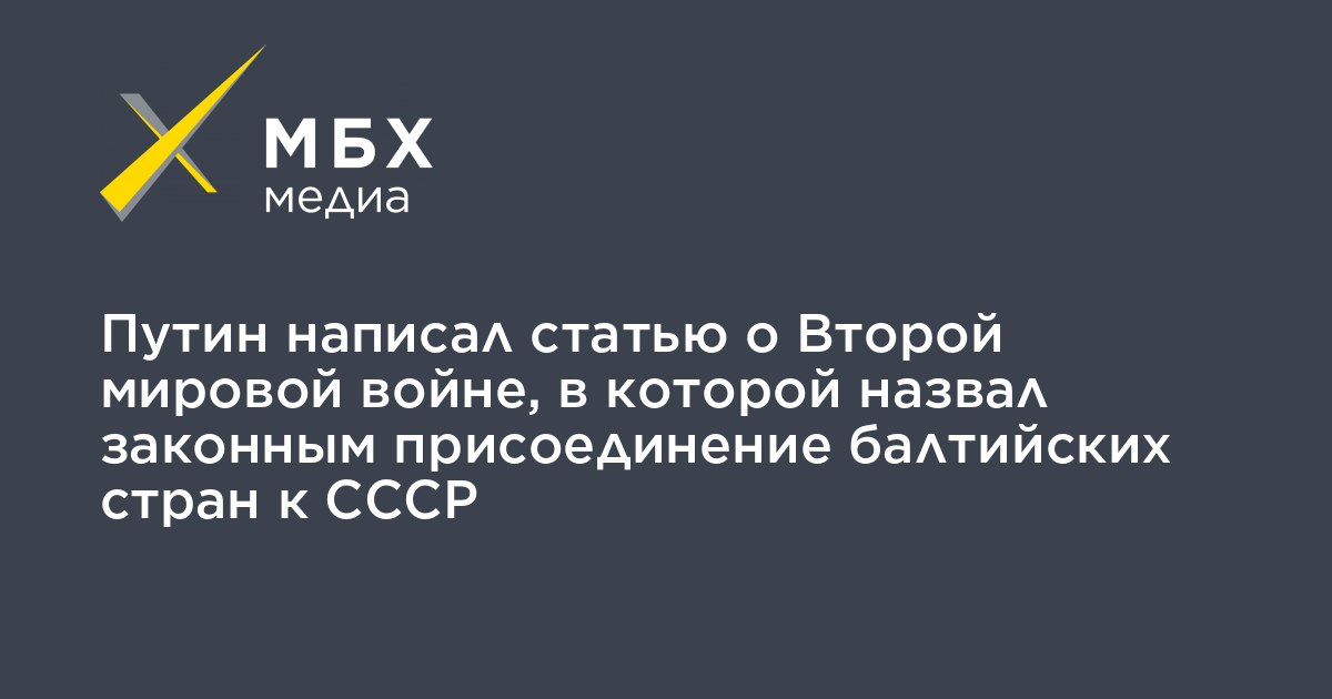 Путин написал статью о Второй мировой войне, в которой назвал законным присоединение балтийских стран к СССР
