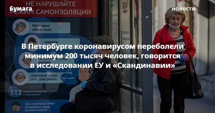 В Петербурге не менее 200 тысяч человек переболели коронавирусом — это почти 6 % от общего числа жителей города старше 18 лет. Об этом говорят предварительные данные исследования Европейского университета и сети клиник «Скандинавия».