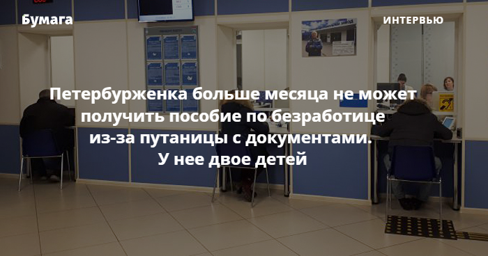 «Бумага» поговорила с петербурженкой, которая потеряла работу менеджера по продажам во время пандемии и осталась практически без денег с двумя детьми. Она рассказывает, как из-за путаницы с документами и задержек в центре занятости уже больше месяца не может получить пособие.