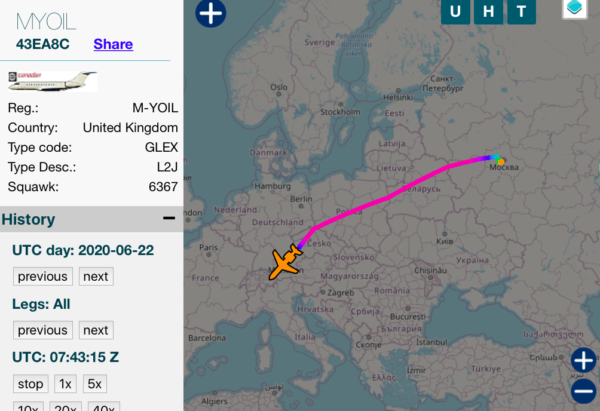 Согласно данным сервиса, самолет вылетел из Внуково в 08:13 (мск) и приземлился в Мюнхене примерно в 10:43. 15 июня этот же самолет летал в Вену.