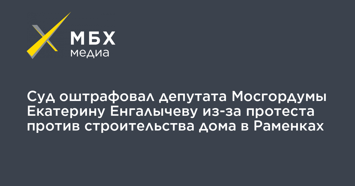 Никулинский суд Москвы оштрафовал депутата Мосгордумы Екатерину Енгалычеву на 30 тысяч рублей из-за акции протеста жителей Раменок против строительства многоэтажного жилого дома на Мичуринском проспекте. Об этом сообщил «МБХ медиа» депутат Мосгордумы Михаил Тимонов.