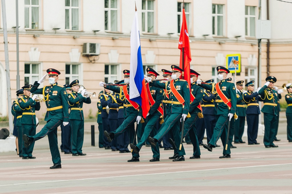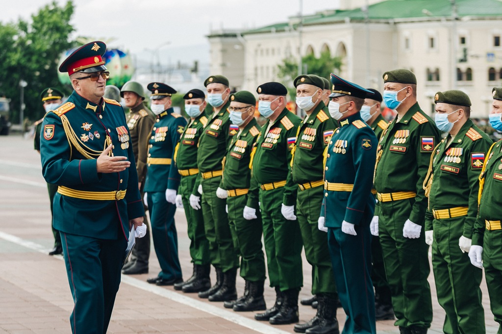 Репетиция военного парада прошла в Улан-Удэ. Часть военнослужащих были без средств индивидуальной защиты, несмотря на обязательный масочный режим.