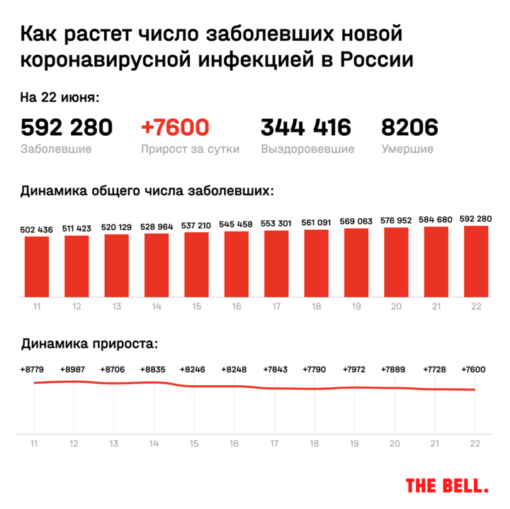 Россия (7 600 новых случаев, меньше 100 смертей за сутки) довольно скоро опустится на четвертое с третьего места в мире по накопленным случаям, прогнозирует Reuters. Ее место займет Индия (15 тысяч случаев в сутки, 300 смертей).