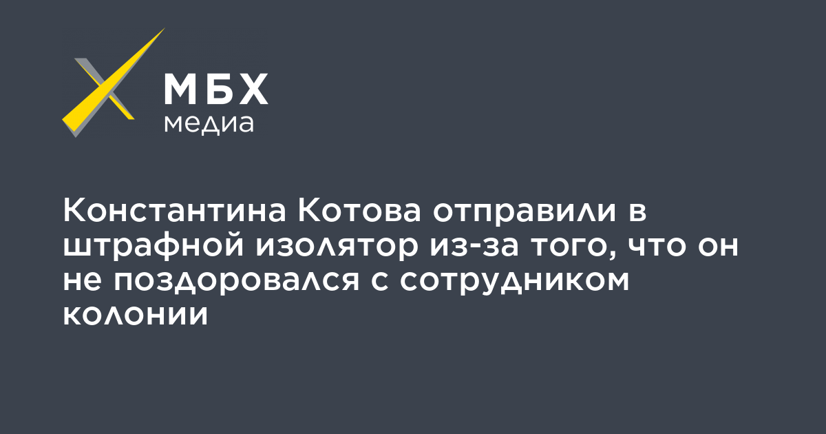 Активиста Константина Котова, которого приговорили к четырем годам колонии за неоднократные нарушения на митингах, отправили в штрафной изолятор (ШИЗО) после того, как он не поздоровался с сотрудником колонии. Об этом в фейсбуке сообщила его адвокат Мария Эйсмонт.