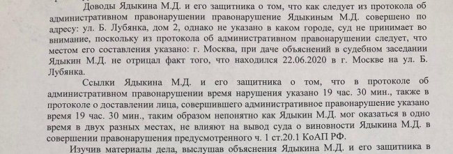 Однако суд посчитал, что эти доводы не опровергают виновность Ядыкина и не стал учитывать их при вынесении решения по делу.