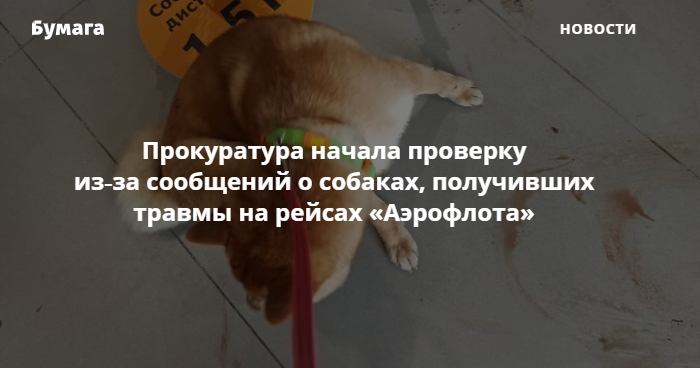 Прокуратура проводит проверку после сообщений о двух собаках, пострадавших на рейсах «Аэрофлота». Об этом сообщила представитель Московской межрегиональной транспортной прокуратуры Екатерина Короткова.