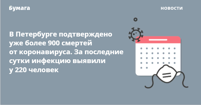 За последние сутки в Петербурге зарегистрировали 35 смертей, всего с начала пандемии в городе насчитывается 904 летальных случая. 221 пациент за прошедший день выздоровел, общее количество излечившихся от инфекции в городе достигло 13868 человек.