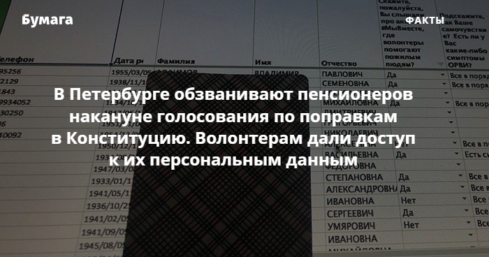 К обзвону привлекают бюджетников, пишут «Фонтанка» и «Ротонда». Для этого им предоставили таблицу с персональными данными пенсионеров