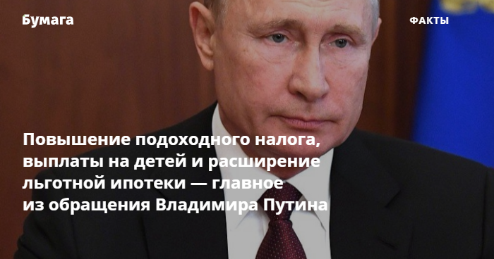 Повышение подоходного налога, выплаты на детей и расширение льготной ипотеки