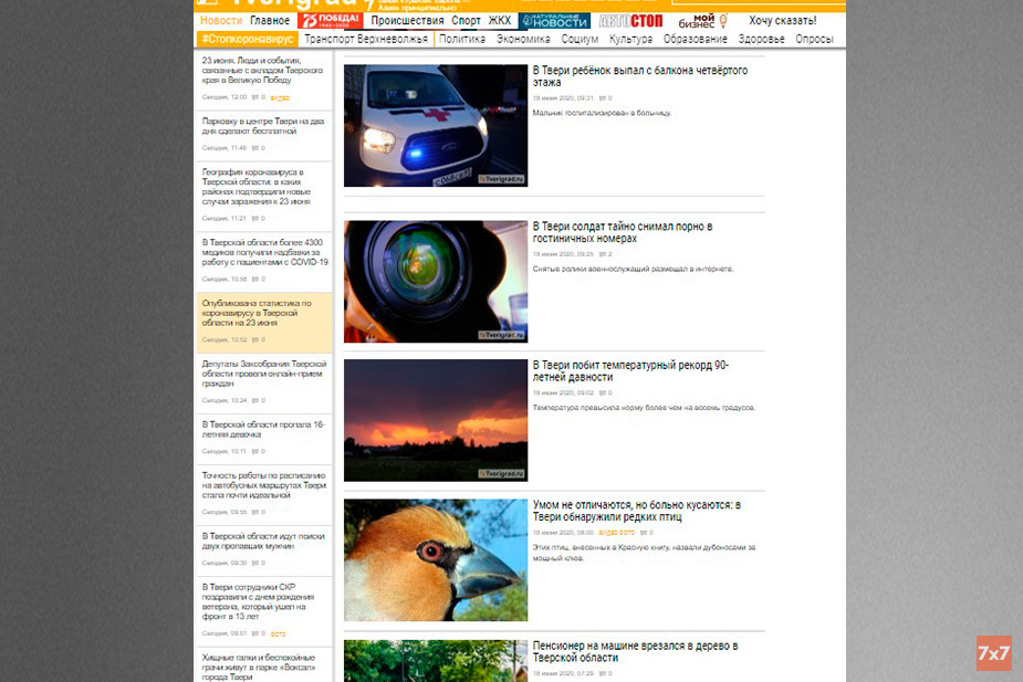 Вот сравнение новостных заголовков на сайте «Твериград» за 23 июня и 18 июня 2020 года.