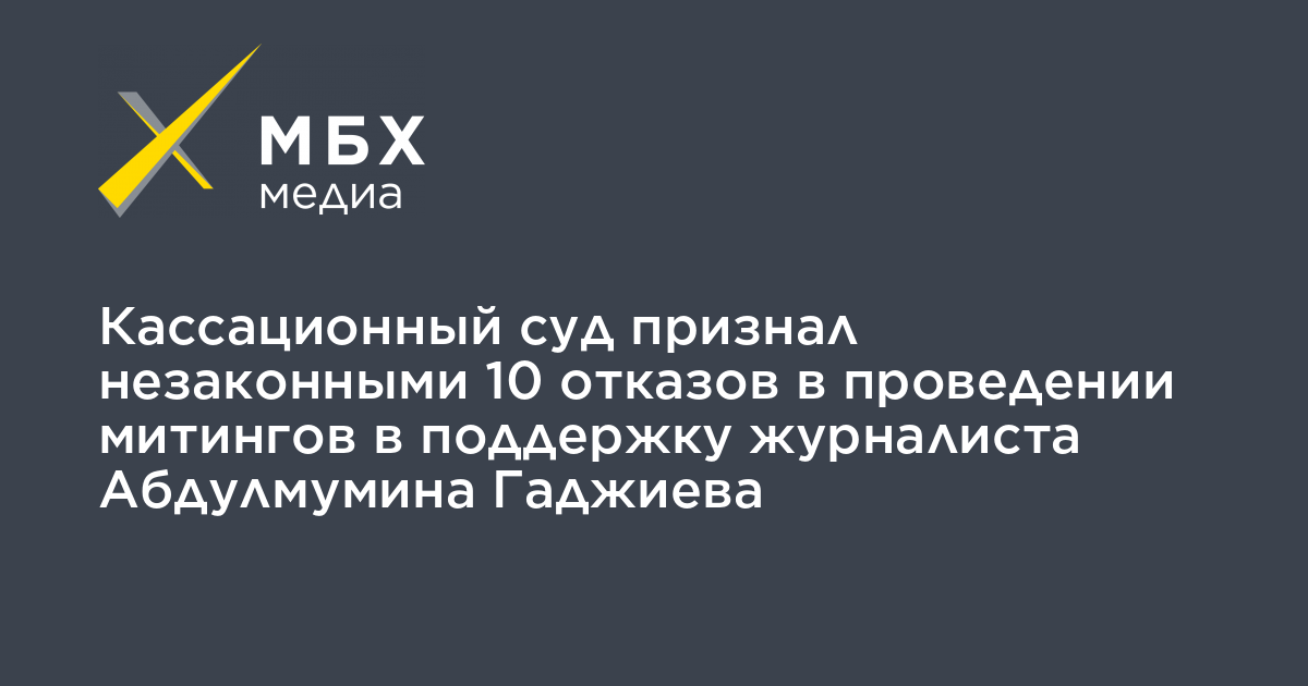 В Пятигорске Пятый кассационный суд отменил десять решений дагестанских судов, которые признали законными отказы согласовывать митинги в поддержку журналиста «Черновика» Абдулмумина Гаджиева. Об этом сообщает «Кавказский узел» со ссылкой на юриста Арсена Магомедова.