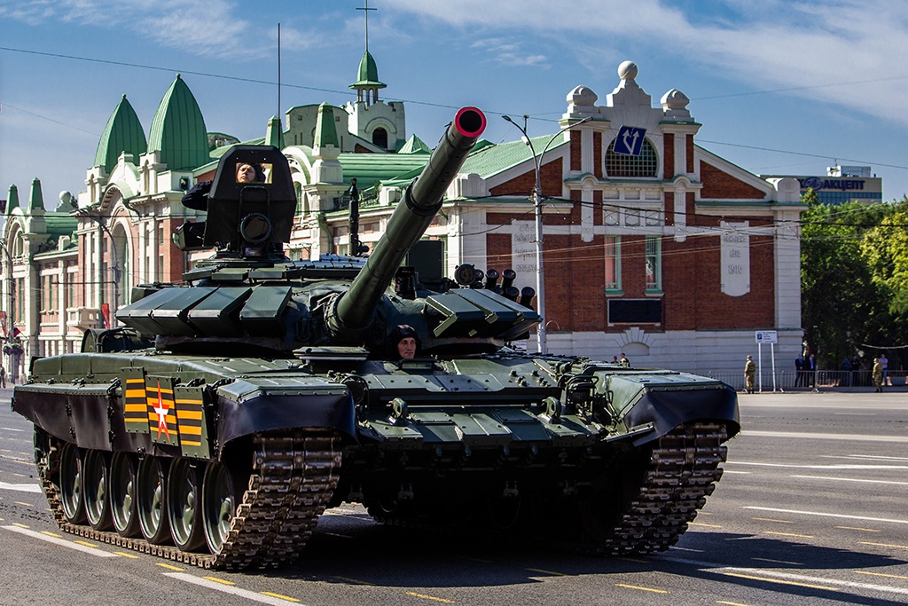 Танк Т-72 П3М, после проезда которого оказался поврежден асфальт на Красном проспекте.
