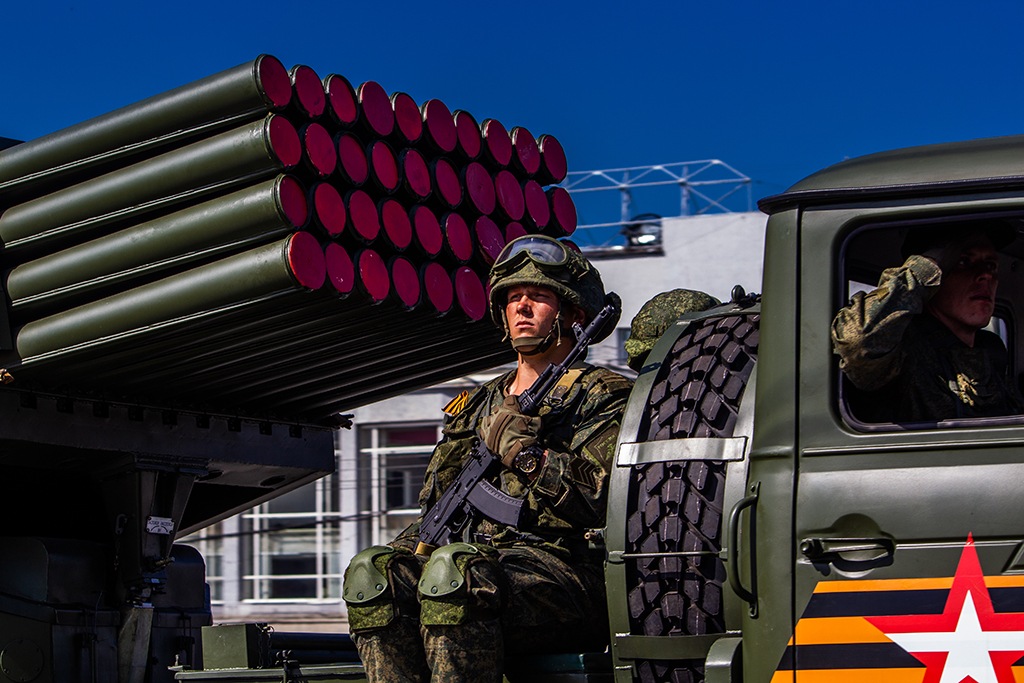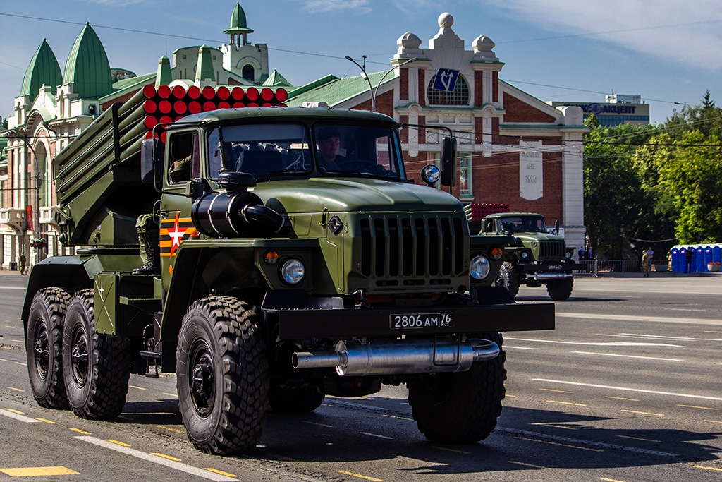 122-миллиметровые боевые машины реактивной артиллерии БМ-21 «Град».