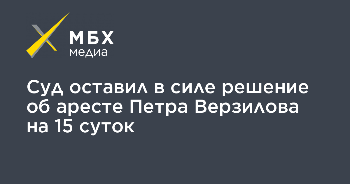 Мосгорсуд оставил в силе решение об аресте на 15 суток участника Pussy Riot Петра Верзилова по делу о мелком хулиганстве (статья 20.1 КоАП) Об этом сообщает корреспондент «МБХ медиа».
