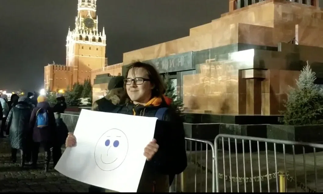 В Москве на 75 тысяч рублей оштрафовали активиста, развернувшего на Красной площади плакат с изображением смайлика