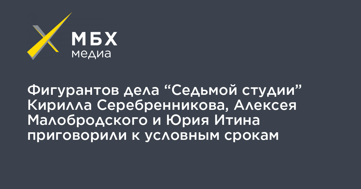 Также условные сроки получили бывший директор «Гоголь-центра» Алексей Малобродский и бывший директор «Седьмой студии» Юрий Итин. Сами сроки суд назовет позже.