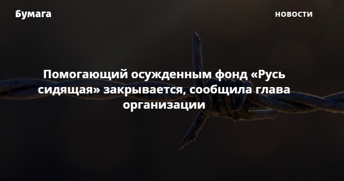 Фонд «Русь сидящая», оказывающий помощь осужденным и их семьям, вынужден будет закрыться. Об этом в фейсбуке рассказала основательница и глава организации Ольга Романова.