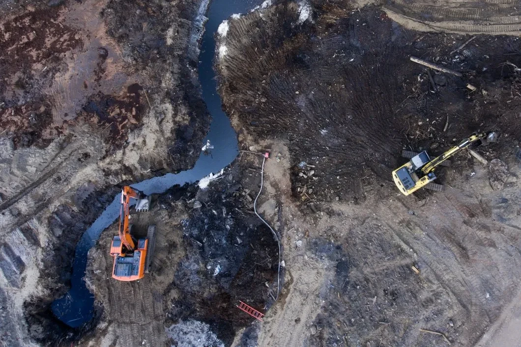 Ликвидация последствий разлива топлива на ТЭЦ-3. Фото: Денис Кожевников / ТАСС
