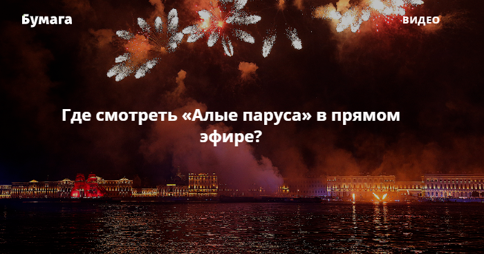 Прямой эфир будет вести Пятый канал, начало в 22:30. Телеканал покажет как концертную программу (до 00:30), так и свето-пиротехническое мультимедийное шоу и корабль с алыми парусами (до 1:00).