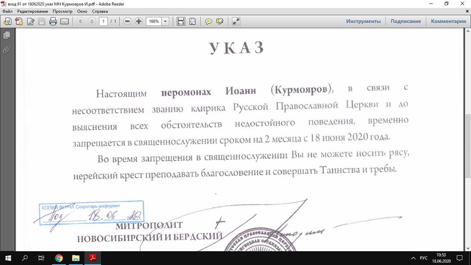 – Я был в отпуске. Мне позвонил ректор семинарии и попросил написать объяснительную на имя митрополита. Я был в дороге и быстро сделать это не смог. Дожидаться они не стали и выдали запрет. Возможно решили, что я "встал в позу".