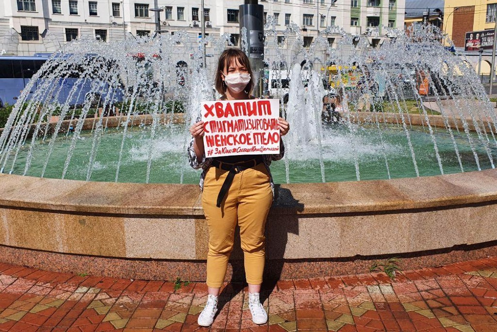 Акция стала первой и еще для одной участницы — Анны. Она призналась, что ей было страшно: «Но некомфортность в себе перебарывать надо обязательно. Потому что, иначе будем так с плакатиками стоять всю жизнь, а в России надо уже менять что-то».