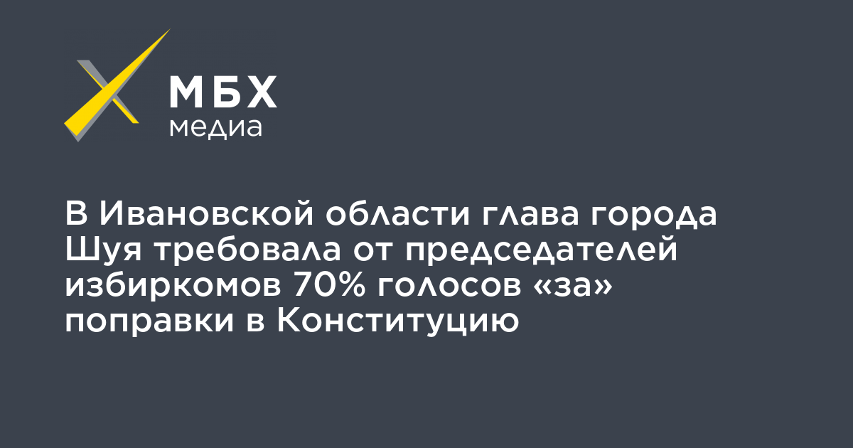 В Ивановской области глава города Шуя Наталья Корягина требовала от председателей избиркомов 70% голосов «за» поправки в Конституцию и угрожала в случае невыполнения плана. Аудиозапись с ее голосом в бот «МБХ медиа» прислал один из читателей.