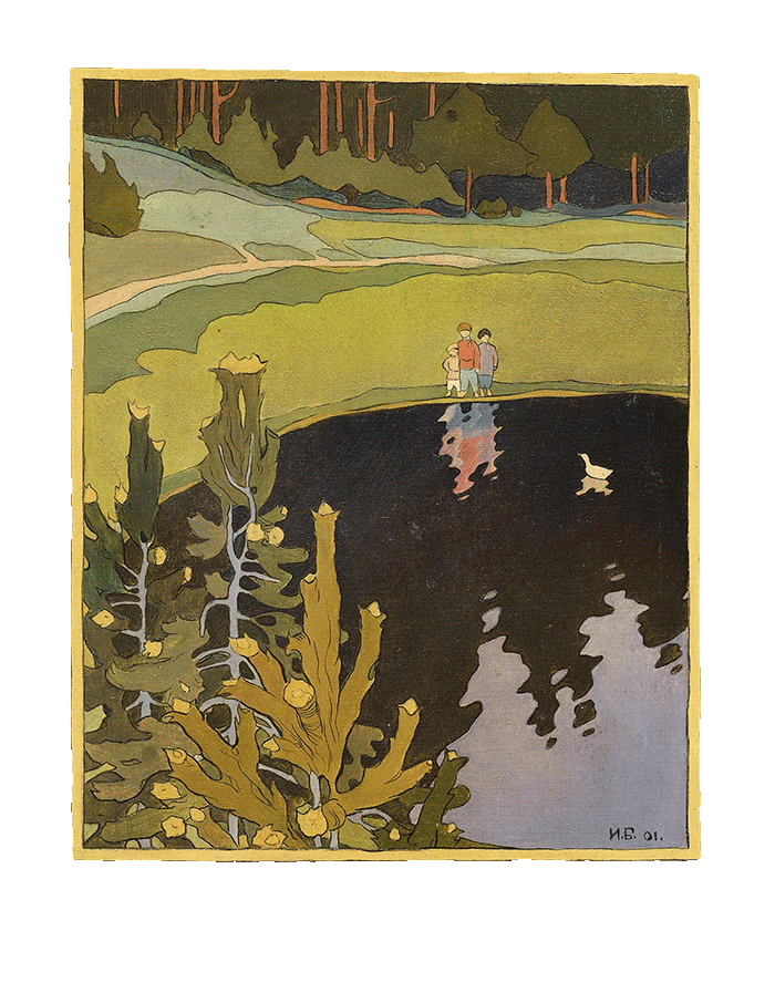 «Хозяин да хозяюшка, пустите переночевать да ночь переспать». Вот пришел. А ночью в лесу все зашумело, деревья-то до земли кланятся. Леший это. А из-за печки голос: «Тише-тише, человек здесь». Это хозяюшка. И ребенок плачет. Это у нее ребеночек родился. И стихло все.