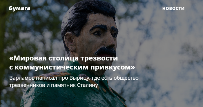 Блогер-урбанист Илья Варламов написал про Вырицу в Гатчинском районе Ленобласти. Он прозвал поселок «мировой столицей трезвости с коммунистическим привкусом» — из-за здания Общества духовных христиан-трезвенников братца Иоанна Чурикова и памятника Иосифу Сталину.