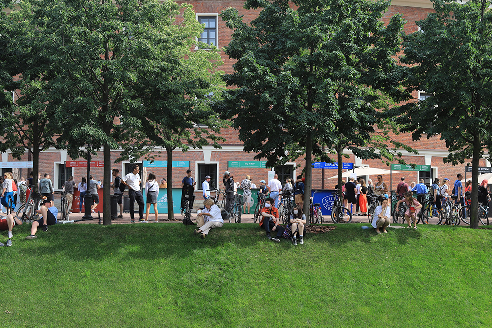 «Бумага» показывает, как выглядит остров — с отдыхающими на газонах посетителями и очередями у пунктов заказа уличной еды.