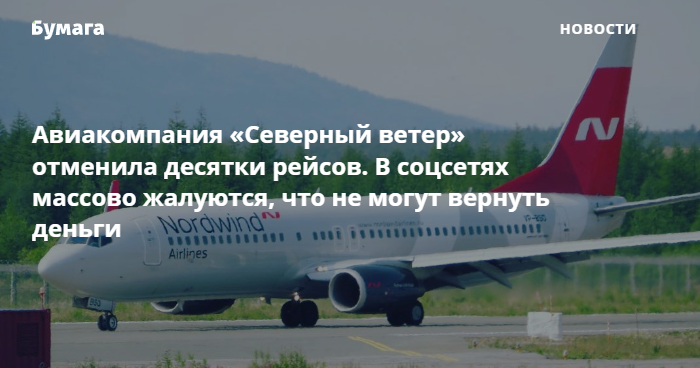 Клиентам авиакомпании «Северный ветер» пришли сообщения об отмене полетов. В соцсетях оставляют сотни жалоб на ситуацию и невозможность вернуть деньги. Внимание на ситуацию обратила «Фонтанка».